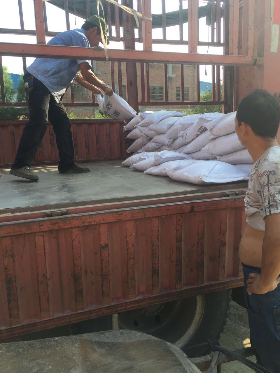 來(lái)我公司準備發(fā)貨棕剛玉砂的大卡車(chē)